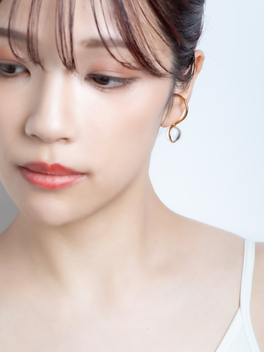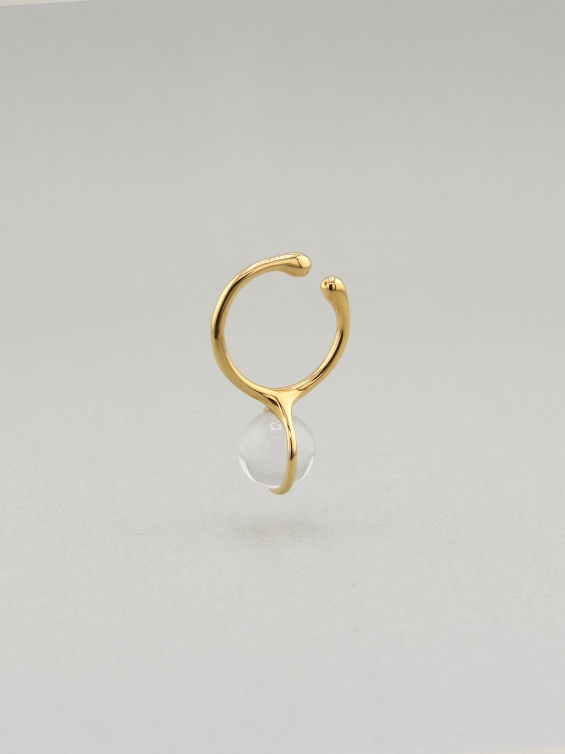 水滴のような大きなクリアクォーツがポイントのイヤーカフ
